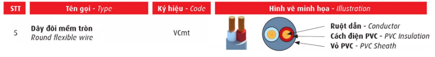 Dây cáp điện bọc nhựa VCmt dùng cho các hệ thống điện dân dụng.