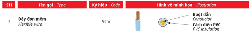 | 0,5 | 16/0,20 | 39,0 | 0,6 | 2,1 | 9 | 300/500 V | TCVN 6610-3 /IEC 60227-3 |